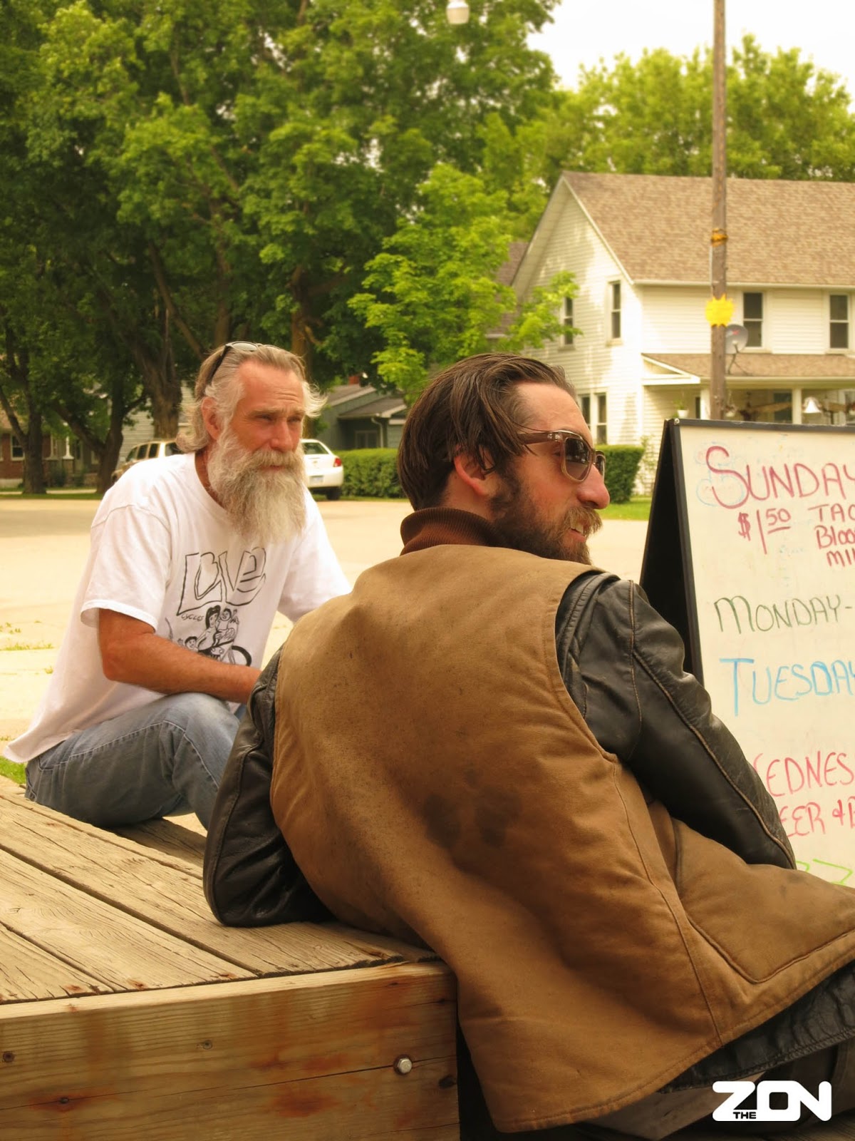 Fostoria was our second stop of the day - a quiet little town with a biker bar at it's center. We relaxed in the streets after a ride of about 30 bikes departed leaving us the last non-natives in town. On the return leg home I broke a gas tank tab off the front of my red bike so we had to stop to strap the tank down. No issues after that except for a few drops of rain. Thanks to all guys for sharing the day. Davey is riding back to California as we speak - Terry and I will be making the same trip on Saturday for Born Free 5. Ry will be conjuring up his spooky magic in the garage at home - something sure to blow minds by mid summer.